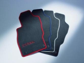 - Anthracite avec bordures rouges et logo Corsa surpiqué en rouge sur les deux tapis avant